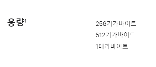 애플 비전프로 용량은 256기가바이트, 512기가바이트, 1테라바이트 3가지 용량으로 나옵니다.