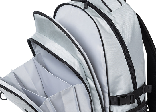 탈부착 가능한 체스트 벨트는 체형에 맞게 조절 가능하며, 안정적인 착용감을 제공해 줍니다. 실용성을 고려한 3단 수납은 수납 분리에 용이합니다. 16인치 노트북 수납 가능한 포켓이 있으며, 처짐 방지 내부 평판을 적용해 무거운 물건 수납 시 접이식 평판 작업으로 가방의 처짐을 방지합니다.