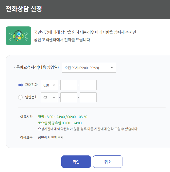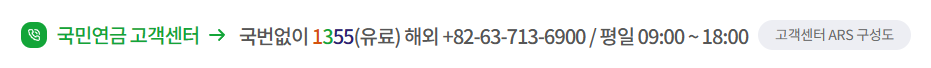 1) 국민연금 고객센터 1355번을 누르고 고객센터 통화 연결 후 본인 인증합니다.