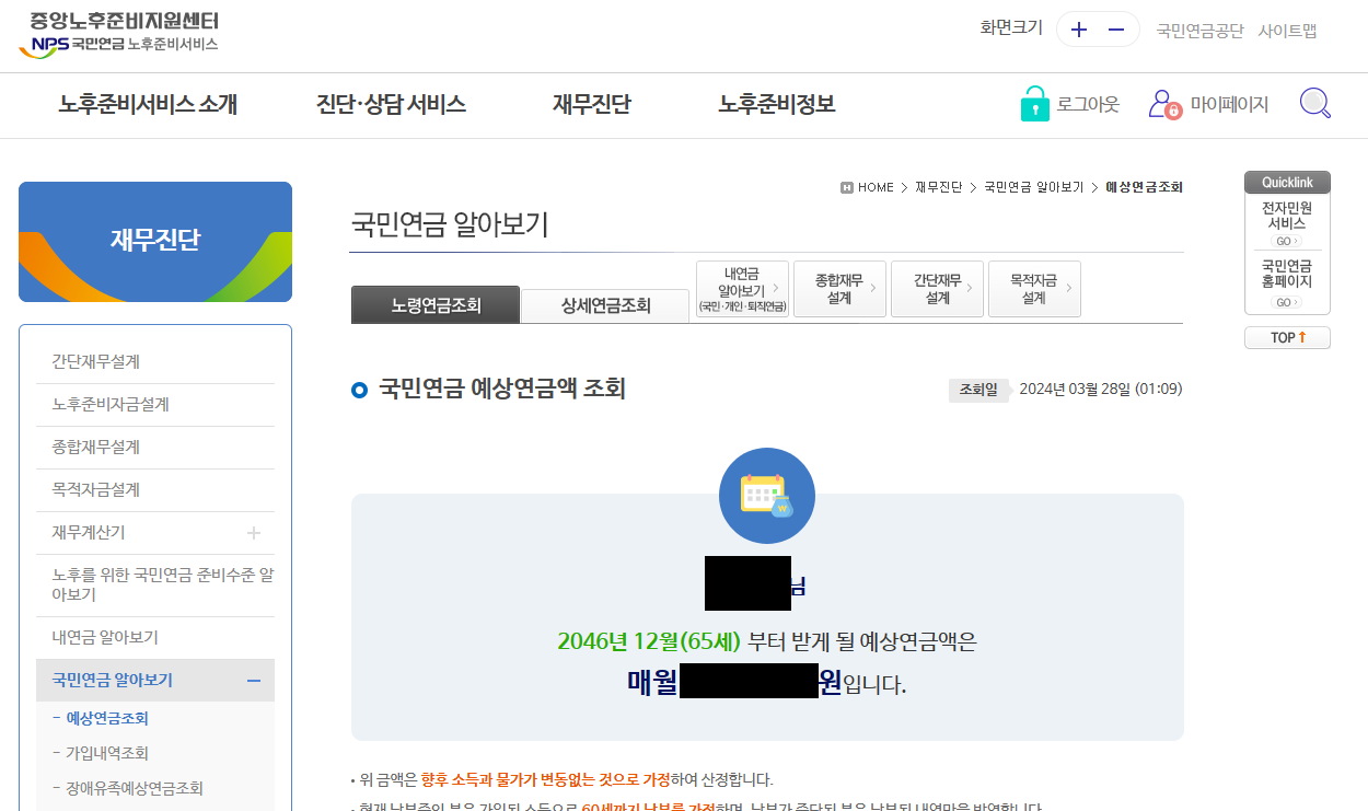 아래 링크를 통해서 국민연금 예상수령액을 알아보겠습니다.