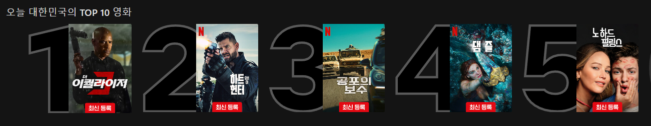 넷플릭스 주간 순위로 대한민국의 TOP 10 영화 순위를 먼저 알아보겠습니다.